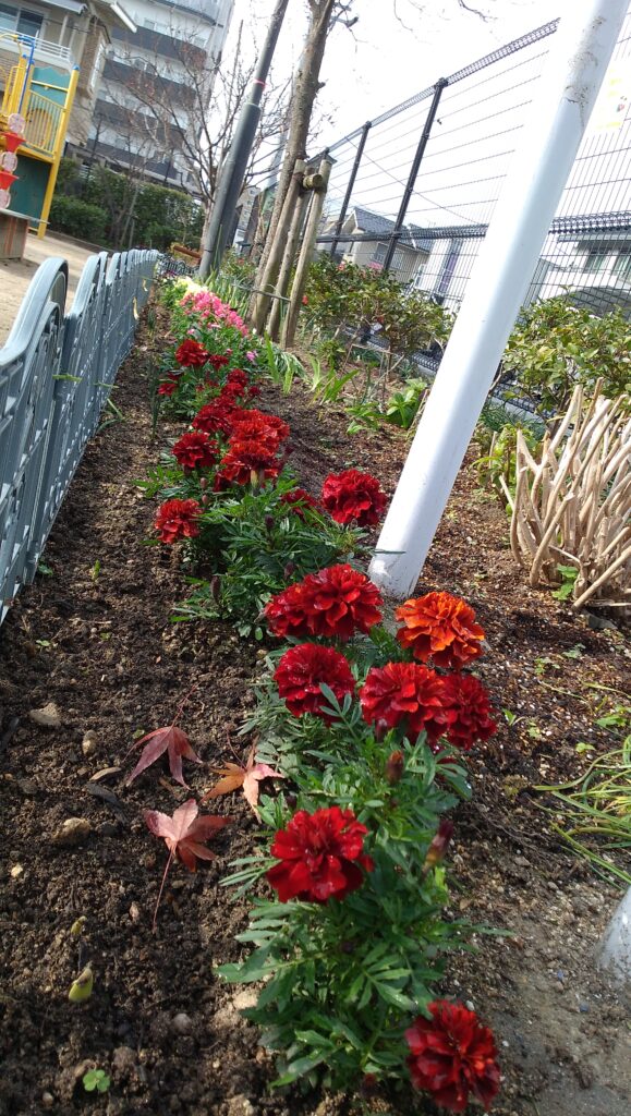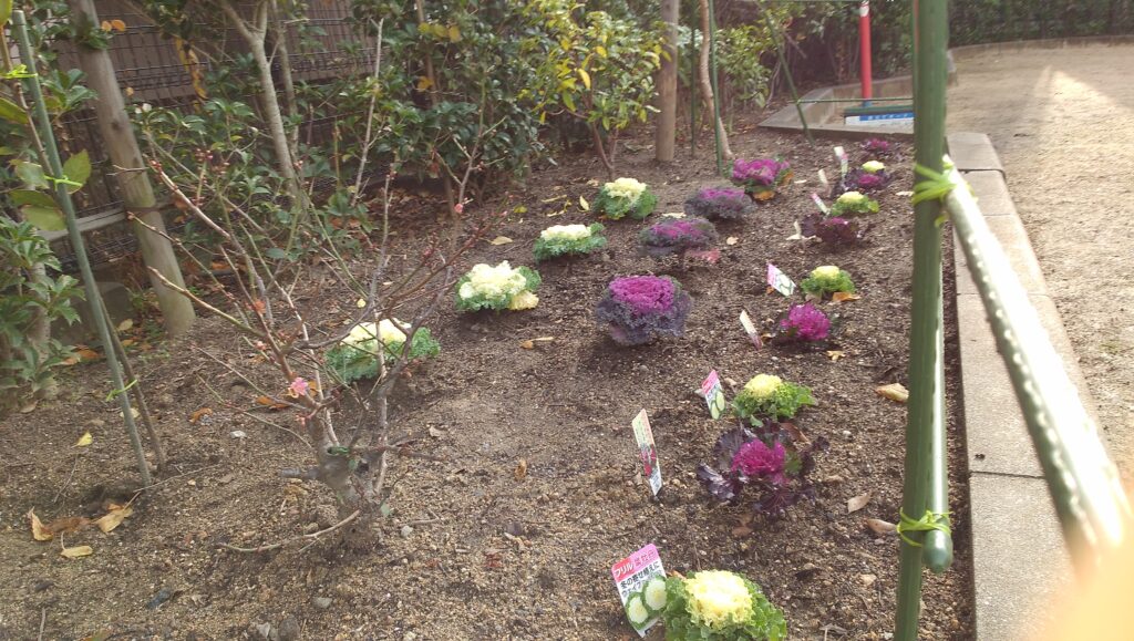 今年度は、まず花壇の造成と土づくりを行い、メンバー提供の花を植えました。9月には秋色マリーゴールド多粒、テルスター、金魚草、ビオラ、マガァンプKを市の財政支援により植えました。また、花壇の維持管理に必要な道具類も市の財政支援により取得しました。さらに、12月には葉牡丹(チジミ、ウェイブローホワイト、クリスタルスレッド)、花苗を市の財政支援により植えました。今年度の主な活動は以上ですが、水やりや除草、清掃などは適宜実施しています。